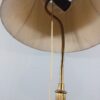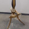 Lampa podłogowa z mosiężną podstawa i materiałowym abażurem.