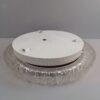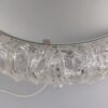 Okrągłe lustro z ramą wykonaną z grubego szkła akrylowego podświetlanego kilkoma żarówkami oraz włącznikiem pociągowym.