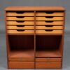 Szafka żaluzjowa z podwójną roletą z drewna teakowego.