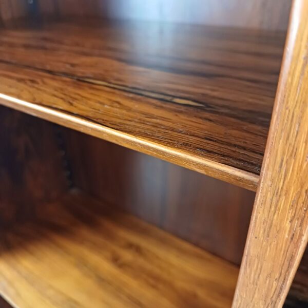 Stolik kawowy z drewna czereśniowego z szybą położoną na czterech chromowanych kolumienkach.
