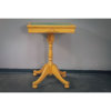 Stolik na czwórnogu z blatem pokrytym suknem w części środkowej.
